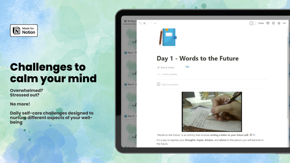 Prepare for an exciting array of daily self-care challenges thoughtfully crafted to nurture different aspects of your well-being.