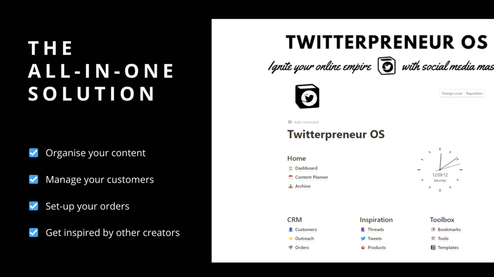 Unlock your entrepreneurial potential and unleash the power of Twitter with the all-in-one Twitterpreneur OS Notion Template.