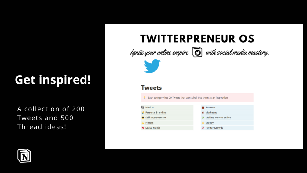 The ultimate Notion-Template designed to empower aspiring entrepreneurs and seasoned business owners in conquering the Twitterverse.